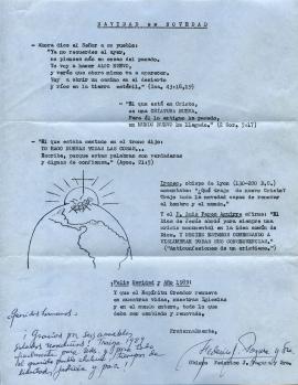 Carta de saludo de navidad donde se lee una serie de citas de la Biblia y el texto "Queridos hermanos, gracias por sus amables saludos navideños. Traiga 1989 finalmente para uds. y para todo el querido pueblo chileno tiempos de libertad, justicia y pa. Firma Obispo Federico J. Pagura